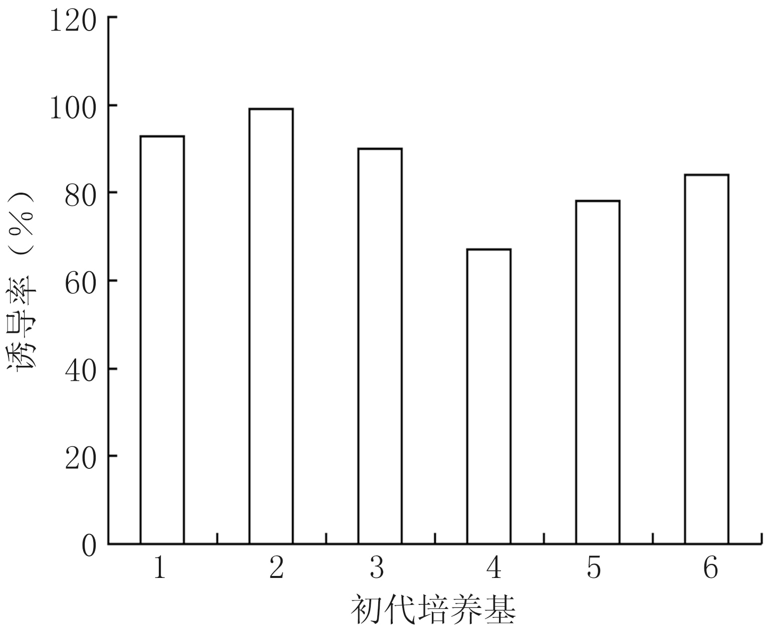 圖2 不同初代培養基莖段腋芽誘導率