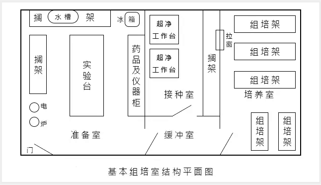 為了完成上述工作,需要有一個設備和功能齊全的實驗室。水電需要安 全通暢,實驗場地要足夠寬敞,各種儀器能正常工作,器具和設備要配備齊全,否則植物組織的快速繁殖不能正常進行。