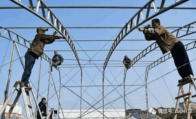 其拱杆、縱向拉杆、端頭立柱均為薄壁鋼管,並用專用卡具連接形成整體,所有杆件和卡具 均采用熱鍍鋅防鏽處理,是工廠化生產的工業產品,已形成標準規範的20多種係列。