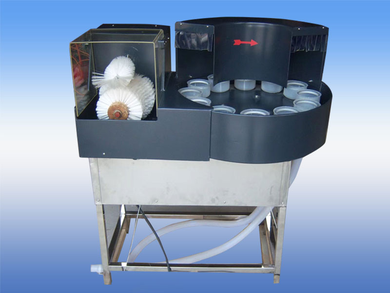 4、插入220V電源,機器開始工作。注意要戴好防護手套,雙手握住瓶子,瓶子內要裝有水,慢慢套上刷軸上,輕移瓶子,把不幹淨的物體用轉軸刷掉之後。瓶口向下對準衝淋瓶托,輕放入內,當瓶子經過衝淋後可以取出。